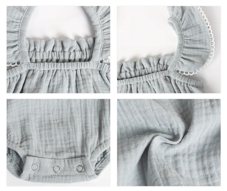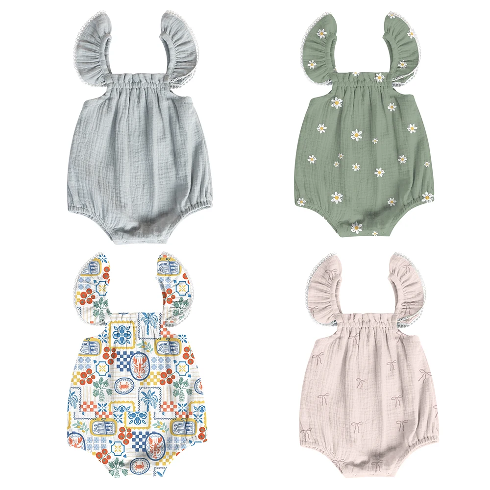 High Quality Cute 100% Cotton Baby Clothes Ruffled Sleeve One-Piece Baby Rompers Set for Daily Wear